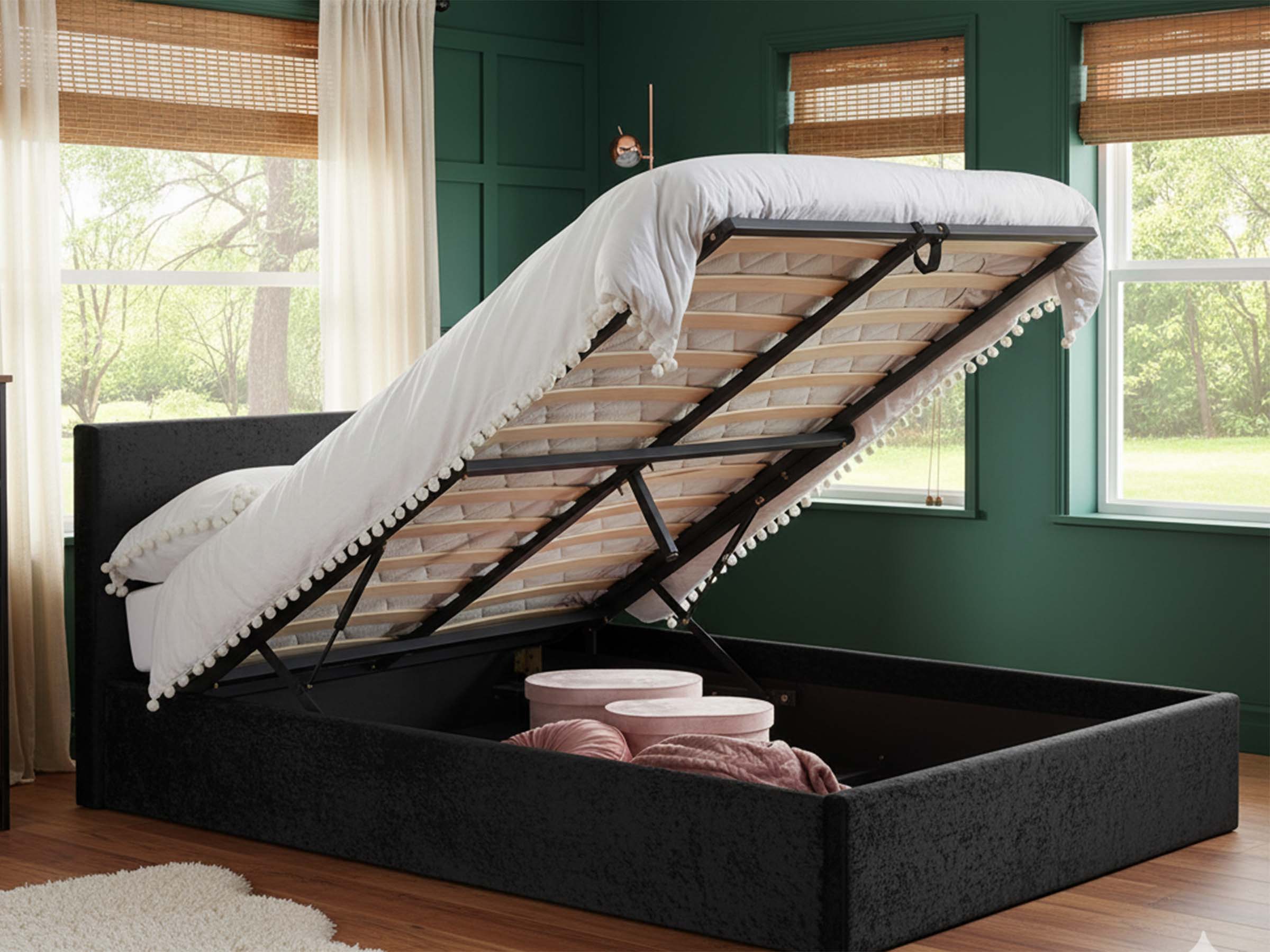 Add lift-up storage to the solid divan base structure to create a stable and useful mix.