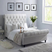 A Belmont sleigh bed is crafted with fine material and comes with a chesterfield headboard with matching buttons and a curved footboard that provides a sophisticated look to your bedroom. It can be made with crystal diamonds which gives it extra elegance. It is crafted with fine material that assures its durability and it can be made in different sizes and colors in plush velvet fabric that meets your demand.