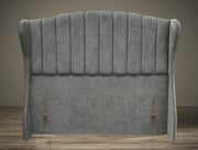 The Lestor Luxury Headboard features a majestic wingback design combined with deep vertical channeling for a look of grand sophistication. Upholstered in a plush, charcoal velvet, this piece creates a cozy, enveloping, and distinctly glamorous focal point in any bedroom.