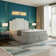 The Tunio Bed has a smooth upholstered headboard with a simple, modern design. Its divan base comes with ottoman storage,...
